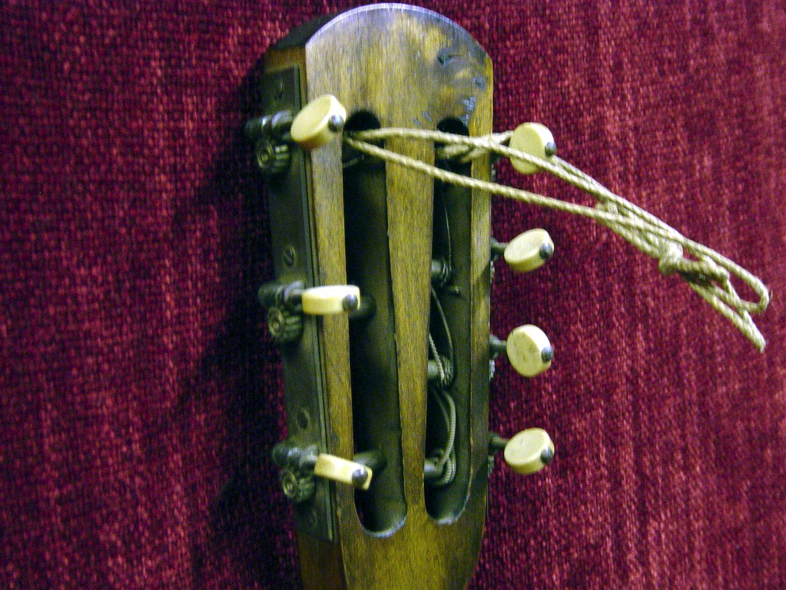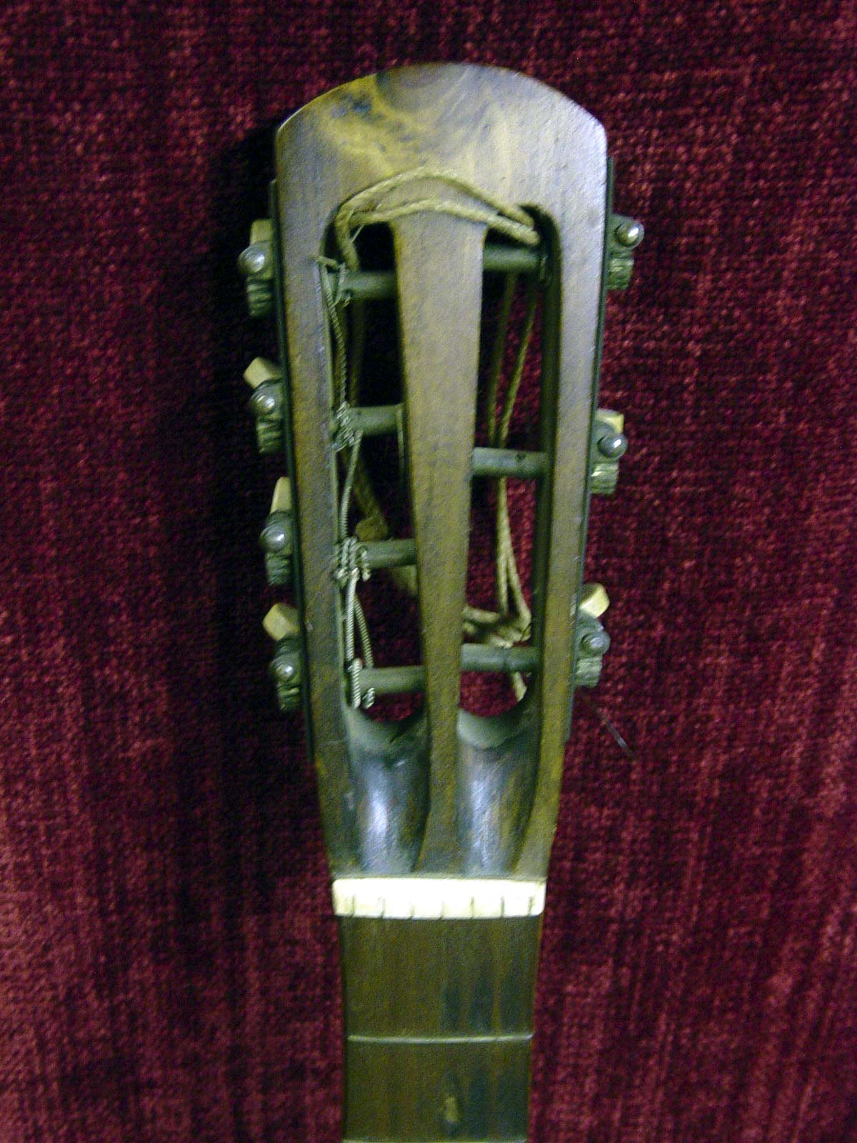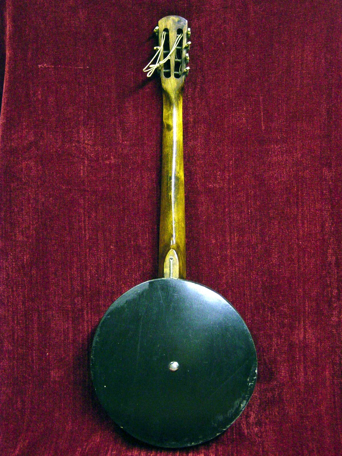 My uncle Pete Fairbanks gave me this instrument years ago and I've never done anything with it other than hang it on the wall. Seems it's difficult finding a set of strings or a tailpiece for this. It appears to be homemade. As I was dusting, I thought it appropriate to post what pictures I have in the hope that internet visitors could help fill in some of the blanks about this vintage piece. If you can shed any history on the Seven String Banjo shown here, please click the email link at the bottom of the page to tell me about it. I will post any relevations I receive here in the future.